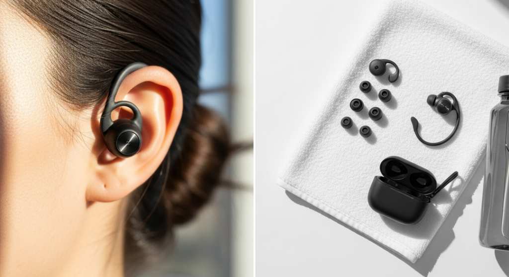 運動中や外出時に使う場合は、耐久性とフィット感が求められます。このような場面では落ちるリスクを減少させるためにも、耳掛け式やスポーツ専用デザインがおすすめです。また、防水性能も重視すべきポイントです。